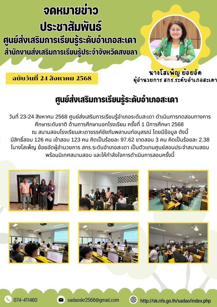 ศูนย์ส่งเสริมการเรียนรู้ระดับอำเภอสะเดา ดำเนินการทดสอบทางการศึกษาระดับชาติ ด้านการศึกษานอกโรงเรียน ครั้งที่ 1 ปีการศึกษา 2568