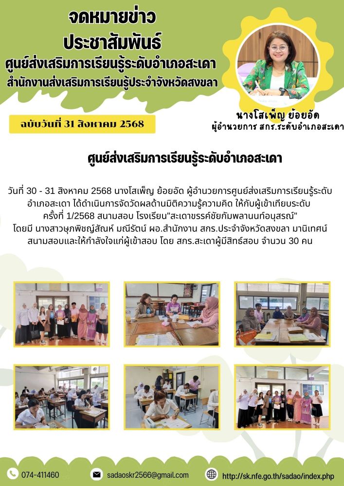 ศูนย์ส่งเสริมการเรียนรู้ระดับอำเภอสะเดา ดำเนินการจัดวัดผลด้านมิติความรู้ความคิด ให้กับผู้เข้าเทียบระดับ ครั้งที่ 1/2568