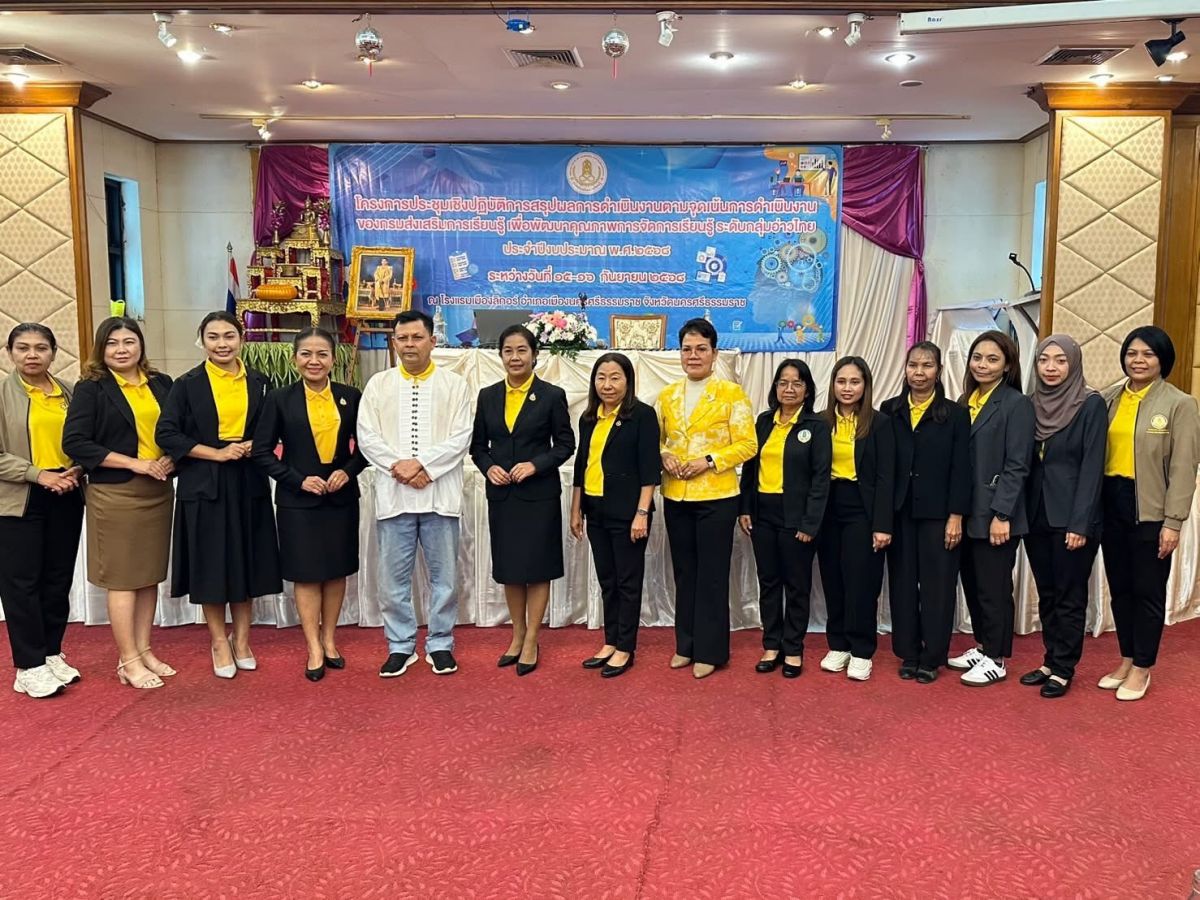 นางจีรวรรณ์ ปัตตะพัฒน์ ผู้อำนวยการ สกร.ระดับอำเภอจะนะพร้อมด้วยผู้บริหารสถานศึกษาและบุคลากรในสังกัด เข้าร่วมโครงการประชุมเชิงปฏิบัติการสรุปผลการดำเนินงานตามจุดเน้นการดำเนินงานของกรมส่งเสริมการเรียนรู้ เพื่อพัฒนาคุณภาพการจัดการเรียนรู้ ระดับกลุ่มอ่าวไทย ประจำปีงบประมาณ พ.ศ. 2568