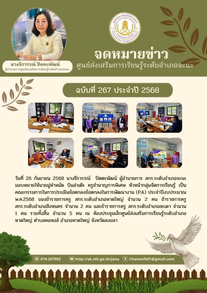 หัวหน้ากลุ่มจัดการเรียนรู้ เป็นคณะกรรมการในการประเมินข้อตกลงในการพัฒนางาน (PA) 30 / ก.ย. / 2568