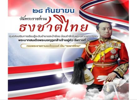 ศูนย์ส่งเสริมการเรียนรู้ระดับอำเภอสะบ้าย้อย น้อมรำลึกถึงพระมหากรุณาธิคุณ พระบาทสมเด็จพระมงกุฎเกล้าเจ้าอยู่หัว ที่ทรงพระกรุณาโปรดเกล้าฯ พระราชทาน ธงไตรรงค์ เมื่อวันที่ ๒๘ กันยายน ๒๔๖๐ ให้เป็นธงชาติไทยจนถึงปัจจุบัน
