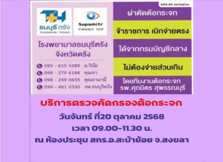 ขอประชาสัมพันธ์จากโรงพยาบาลธนบุรีตรัง ให้บริการตรวจคัดกรองต้อกระจกฟรี
