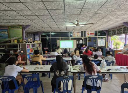 วันที่ 6 มิถุนายน 2568 นางจีรวรรณ์ ปัตตะพัฒน์ ผู้อำนวยการ สกร.ระดับอำเภอจะนะ มอบหมายให้ครูศูนย์การเรียนรู้ระดับตำบลนาทับ ดำเนินการกิจกรรมการพบกลุ่มนักศึกษา ศกร.ระดับตำบลนาทับ ประจำภาคเรียนที1/2568 รายวิชาศิลปศึกษา เรื่อง ความเป็นมาของทัศนศิลป์พร้อมให |