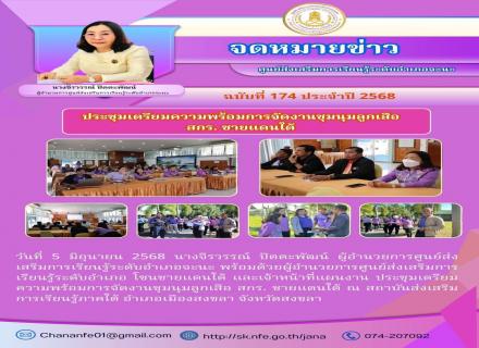 วันที่ 5 มิถุนายน 2568 นางจีรวรรณ์ ปัตตะพัฒน์ ผู้อำนวยการศูนย์ส่งเสริมการเรียนรู้ระดับอำเภอจะนะ พร้อมด้วยผู้อำนวยการศูนย์ส่งเสริมการเรียนรู้ระดับอำเภอ โซนชายแดนใต้ และเจ้าหน้าที่แผนงาน ประชุมเตรียมความพร้อมการจัดงานชุมนุมลูกเสือ สกร. ชายแดนใต้ ณ สถาบันส |