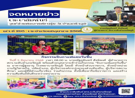 วันที่ 5 มิถุนายน 2568 เวลา 08.00 น. นายณัฐภูมินทร์ สังข์พงศ์ ผู้อำนวยการ สกร.ระดับอำเภอรัตภูมิ พร้อมด้วยบุคลากรเข้าร่วมกิจกรรม \"จิบกาแฟแลหวันขึ้น\" ณ อาคารผู้สูงอายุ โรงพยาบาลรัตภูมิ โดยมี หัวหน้าส่วนราชการ, หัวหน้าหน่วยงานรัฐวิสาหกิจ, ปลัด |