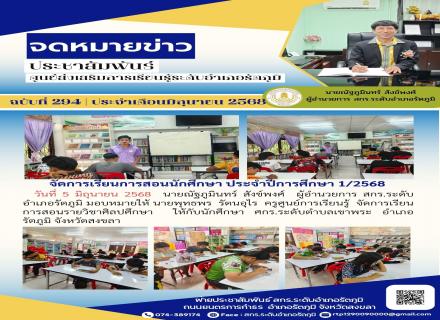 วันที่ 5 มิถุนายน 2568 นายณัฐภูมินทร์ สังข์พงศ์ ผู้อำนวยการ สกร.ระดับอำเภอรัตภูมิ มอบหมายให้ ว่าที่รต.หญิงอังคณา กาญจนโรจน์ และน.ส.บุญญาพร กิติวิเชียร ตำแหน่ง ครูผู้สอนคนพิการพบกลุ่มรายวิชาศิลปศึกษา โดยมี นายปรีชา สุวรรณลอยล่อง หัวหน้างานการศึกษาคุณวุฒิ |