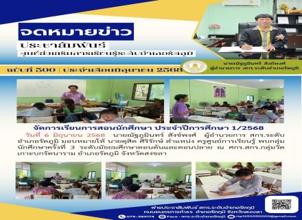 วันที่ 6 มิถุนายน 2568 ดร.ไพโรจน์ คเชนทองสุวรรณ์ ผู้อำนวยการศูนย์ส่งเสริมการเรียนรู้ระดับอำเภอหาดใหญ่ มอบหมายให้ นางอมรพันธ์ ทองแก้ว ครูศูนย์การเรียนชุมชน ดำเนินกิจกรรมพบกลุ่มนักศึกษา ณ ศรช.สกร.ระดับอำเภอหาดใหญ่ |