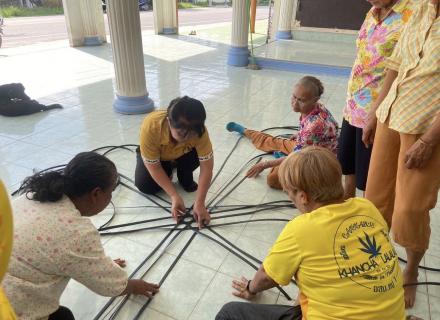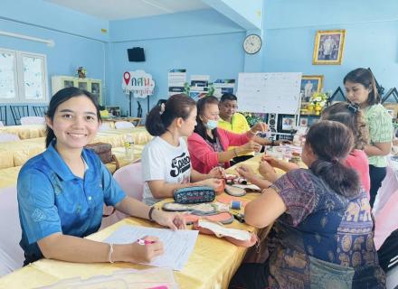 นางกานดา คงงามขำ ครูชำนาญการ นิเทศ ติดตามโครงการศูนย์ฝึกอาชีพชุมชน กิจกรรมชั้นเรียนวิชาชีพ (หลักสูตร31 ชั่วโมงขึ้นไป) หลักสูตร การทำผลิตภัณฑ์งานสานเส้นพลาสติก จำนวน 31 ชั่วโมง ศูนย์การเรียนรู้ระดับตำบลเกาะแต้ว