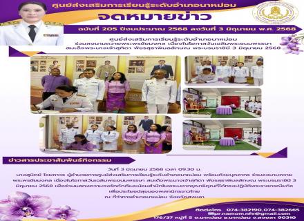 ศูนย์ส่งเสริมการเรียนรู้ระดับอำเภอนาหม่อม ร่วมลงนามถวายพระพรชัยมงคล เนื่องในโอกาสวันเฉลิมพระชนมพรรษา สมเด็จพระนางเจ้าสุทิดา พัชรสุธาพิมลลักษณ พระบรมราชินี 3 มิถุนายน 2568
