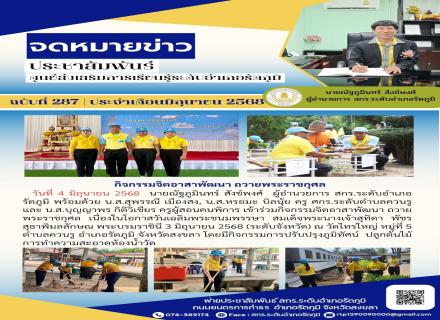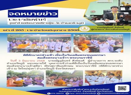 วันที่ 4 มิถุนายน 2568 นายณัฐภูมินทร์ สังข์พงศ์ ผู้อำนวยการ สกร.ระดับอำเภอรัตภูมิ พร้อมด้วย น.ส.สุพรรณี เมืองสง, น.ส.หรอมะ บิลนุ้ย ครู ศกร.ระดับตำบลควนรู และ น.ส.บุญญาพร กิติวิเชียร ครูผู้สอนคนพิการ เข้าร่วมกิจกรรมจิตอาสาพัฒนา ถวายพระราชกุศล เนื่องในโอก |