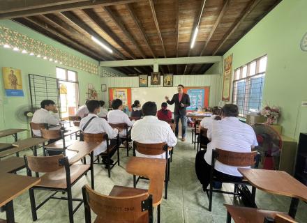 นางสาวพัชรี ไชยโรจน์ ผู้อำนวยการ สกร.ระดับอำเภอเทพา มอบหมายนางสาวอาซีซ๊ะ ตุดบัตร ครูและนางนุชจรี รัตนะ ครูศูนยการเรียนรู้ จัดการเรียนการสอนรายวิชา คณิตศาสตร์ ระดับมัธยมศึกษาตอนปลาย ณ ศกร.ระดับตำบลเกาะสะบ้า อำเภอเทพา จังหวัดสงขลา |