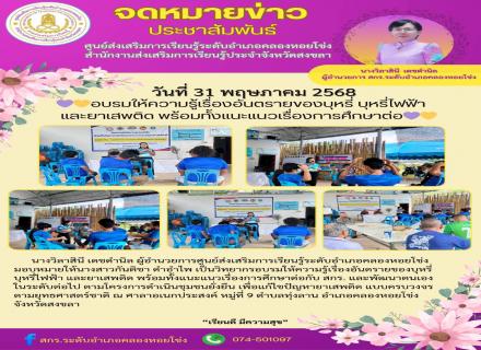 วันที่ 30 พฤษภาคม 2568 เวลา 14.00 น.- 15.00 น. นางจีรวรรณ์ ปัตตะพัฒน์ ผู้อำนวยการสกร.ระดับอำเภอจะนะ มอบหมายให้ ครูศูนย์การเรียนรู้ระดับตำบลบ้านนา เข้าร่วม กิจกรรมจิตอาสาเราทำความด้วยดีหัวใจ ณ กุโบร์จง บ้านท่าชะมวง หมู่ที่ 6 ตำบลบ้านนา อำเภอจะนะ จังหวัดสง |