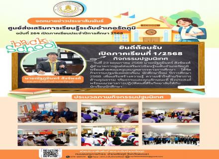 วันที่ 23 พฤษภาคม 2568 นายณัฐภูมินทร์ สังข์พงศ์ ผู้อำนวยการศูนย์ส่งเสริมการเียนรู้ระดับอำเภอรัตภูมิ พร้อมด้วยคณะครูและบุคลากรทางการศึกษา ได้จัดกิจกรรมปฐมนิเทศนักเรียน นักศึกษาใหม่ ปีการศึกษา 2568 เพื่อเสริมสร้างความรู้ ความเข้าใจด้านวิชาการ ด้านคุณธรรม จ |