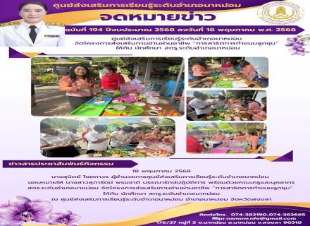 26 / พ.ค. / 2568 : ศูนย์ สกร.ระดับอำเภอคลองหอยโข่ง |