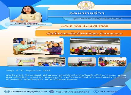 วันที่ 21 พฤษภาคม 2568 นางจีรวรรณ์ ปัตตะพัฒน์ ผู้อำนวยการศูนย์ส่งเสริมการเรียนรู้ระดับอำเภอจะนะ พร้อมด้วย พร้อมด้วย นายจำรัส พรุเพชรแก้ว ร่วมโครงการกินน้ำชายามเช้ากินข้าวยำสัญจร อำเภอจะนะ จังหวัดสงขลา |