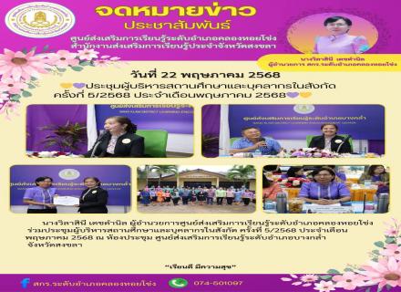 22 / พ.ค. / 2568 : ศูนย์ สกร.ระดับอำเภอคลองหอยโข่ง |