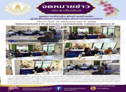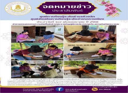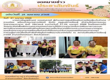 วันที่ 27 เมษายน 2568 นางสาวธัญญ์ลักษณ์ ขจรสกุลวงศ์ ผู้อำนวยการ ศูนย์ส่งเสริมการเรียนรู้ระดับอำเภอควนเนียง มอบหมายให้ นางสาวปรัศณี รักนิ่ม ครูศูนย์การเรียนรู้ตำบลห้วยลึก