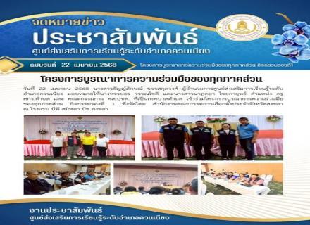 วันที่ 25 เมษายน 2568 นางสาวธัญญ์ลักษณ์ ขจรสกุลวงศ์ ผู้อำนวยการศูนย์ส่งเสริมการเรียนรู้ระดับอำเภอควนเนียง