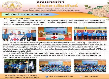 วันที่ 22-23 เมษายน 2568 นางสาวธัญญ์ลักษณ์ ขจรสกุลวงค์ ผู้อำนวยการศูนย์ส่งเสริมการเรียนรู้ระดับอำเภอควนเนียง มอบหมายให้ นางมณฑาทิพย์ สุขรักษ์ ครูศูนย์การเรียนรู้