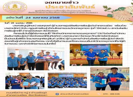 วันที่ 24 เมษายน 2568 สำนักงานส่งเสริมการเรียนรู้ประจำจังหวัดสงขลา นำโดย นางสาวษุภพิชญ์สัณห์ มณีรัตน์ ผู้อำนวยการสำนักงานส่งเสริมการเรียนรู้ประจำจังหวัดสงขลา พร้อมด้วยคณะผู้บริหารและบุคลากร