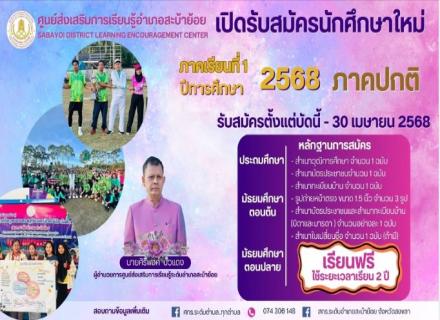 📌สกร.ระดับอำเภอสะบ้าย้อย 🥰 สมัครเรียนนักศึกษาใหม่ ภาคเรียนที่ 1/2568 โดยจะเปิดรับสมัครเรียน ตั้งแต่บัดนี้- 30 เมษายน 2568 📌 ผู้ที่สนใจสมัครเรียน สกร. เตรียมเอกสารที่ใช้สมัคร เรียน สกร.ดังนี้ 1.สำเนาวุฒิการศึกษา จำนวน