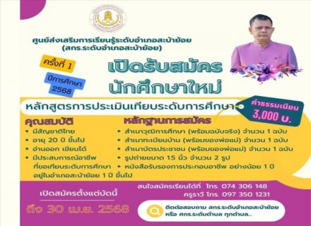 การรับสมัครนักศึกษาหลักสูตร.... การประเมินเทียบระดับการศึกษา ภาคเรียนที่ 1/2568
