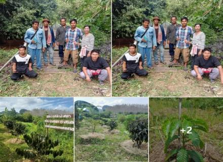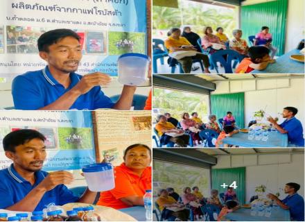นางกุลชญา กุลถิรวงศ์ ครู และนางวัชรี ชูดำ ครู ศกร.ระดับตำบลบ้านโหนด ดำเนินการเยี่ยมกลุ่มอาชีพ กลุ่มกาแฟโบราณบ้านห้วยบอน