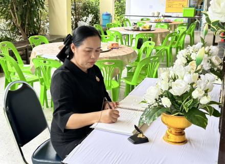 นางสาวพัชรี ไชยโรจน์ ผู้อำนวยการศูนย์ส่งเสริมการเรียนรู้ระดับอำเภอเทพาและบุคลากร สกร.ระดับอำเภอเทพา ร่วมลงนามถวายความอาลัยแด่สมเด็จพระนางเจ้าสิริกิติ์ พระบรมราชินีนาถ พระบรมราชชนนีพันปีหลวง