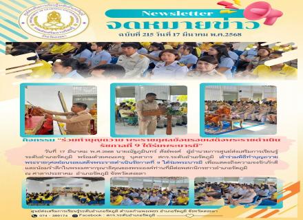 เมื่อวันที่ 14 มีนาคม พ.ศ.2568 นายณัฐภูมินทร์ สังข์พงศ์ ผู้อำนวยการศูนย์ส่งเสริมการเรียนรู้ระดับอำเภอรัตภูมิ พร้อมด้วยคณะครู บุคลากร สกร.ระดับอำเอรัตภูมิ ร่วมกิจกรรมจิตอาสาพัฒนาถวายพระราชกุศล ย้อนรอยเสด็จพระราชดำเนิน รัชกาลที่ 9 ใต้ร่มพระบารมี ณ ท |