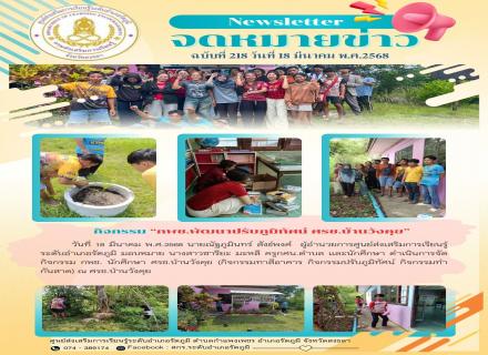 วันที่ 18 มีนาคม พ.ศ.2568 นายณัฐภูมินทร์ สังข์พงศ์ ผู้อำนวยการศูนย์ส่งเสริมการเรียนรู้ระดับอำเภอรัตภูมิ มอบหมาย นางสาวซารียะ มะหลี ครูกศน.ตำบล เเละนักศึกษา ดำเนินการจัดกิจกรรม กพช. นักศึกษา ศรช.บ้านวังคุย (กิจกรรมทาสีอาคาร กิจกรรมปรับภูมิทัศน์ กิจ |