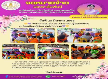 จัดกิจกรรมส่งเสริมการเรียนรู้ตลอดชีวิต ณ โรงเรียนผู้สูงอายุวัดโคกกอ