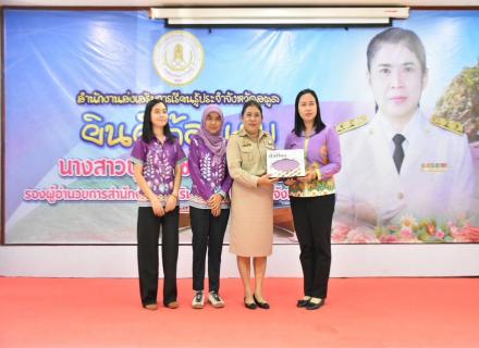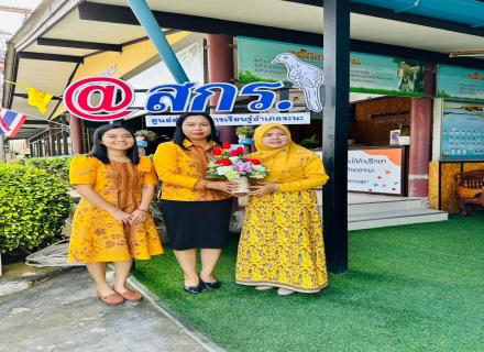 นางสาวพัชรี ไชยโรจน์ ผู้อำนวยการศูนย์ส่งเสริมการเรียนรู้ระดับอำเภอเทพา พร้อมด้วยนางสาวปิยะรัตน์ จัทร์เพชร ตำแหน่งครู และนางศุภลักษณ์ เจริญดี ตำแหน่งครู #ร่วมแสดงความยินดีเนื่องในโอกาส นางสาวบุปผาชาติ เรืองกูล อดีตรองผู้อำนวยการสำนักงานส่งเสริมการเ |
