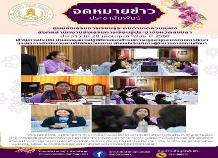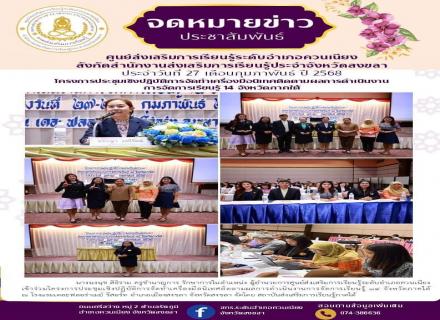 วันที่ 17 กุมภาพันธ์ 2568 นางจีรวรรณ์ ปัตตะพัฒน์ ผู้อำนวยการศูนย์ส่งเสริมการเรียนรู้ระดับอำเภอจะนะ พร้อมด้วยนางลัดดารัตน์ พรุเพชรแก้ว ครู หัวหน้ากลุ่มอำนวยการ พร้อมด้วยหัวหน้าส่วนราชการนำโดยนายซุลกิฟลี สัญญากุล นายอำเภอจะนะ/ ผอ.ศปก.อ.จะนะ รวมทั้งกำนัน ผ |