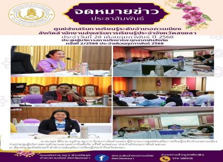 เมื่อวันที่ 25 กุมภาพันธ์ 2568 นางนงนุช สิธิราม ครูชำนาญการ รักษาการในตำแหน่ง ผู้อำนวยการศูนย์ส่งเสริมการเรียนรู้ระดับอำเภอควนเนียง พร้อมด้วยคณะครูและบุคลการ ศูนย์ส่งเสริมการเรียนรู้ระดับอำเภอควนเนียง ร่วมประชุมประจำสัปดาห์ |