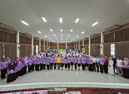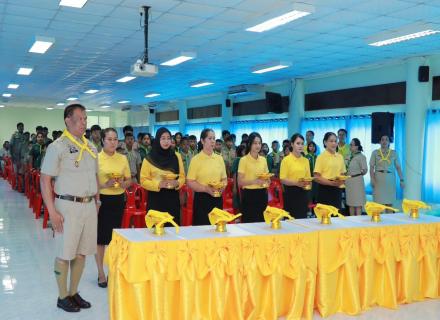 วันที่ 26 กุมภาพันธ์ 2568 นางจีรวรรณ์ ปัตตะพัฒน์ ผู้อำนวยการศูนย์ส่งเสริมการเรียนรู้ระดับอำเภอจะนะ มอบหมายให้นางสาวนภสร จอมศรี พร้อมด้วยตัวแทนลูกเสือ สกร.ระดับอำเภอจะนะ 3 คน เข้าร่วมโครงการพิธีมอบผ้าพันคอจิตอาสาพระราชทาน โดย สำนักงานลูกเสือจังหวัดสงขลา ก |
