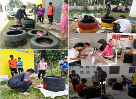 ครู ศกร.ระดับตำบลทุ่งพอ จัดการเรียนการสอนเกี่ยวกับการทำโครงงานและร่วมทำโครงงานสิ่งประดิษฐ์ เรื่อง \"ชุดรับแขกจากล้อรถยนต์\"