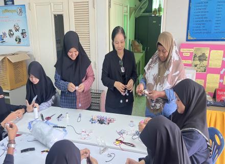 นางสาวสุพยานี มายอ ครูอาสาฯ ปอเนาะ และนางสาวฮาซือม๊ะ สิเด๊ะ ครูอาสาฯ ปอเนาะ จัดกิจกรรมส่งเสริมงานอาชีพ ด้านงานเย็บจักรอุตสาหกรรม ให้กับนักเรียนชั้นมัธยมศึกษาตอนต้น ในภาคเรียนที่ 2/2567