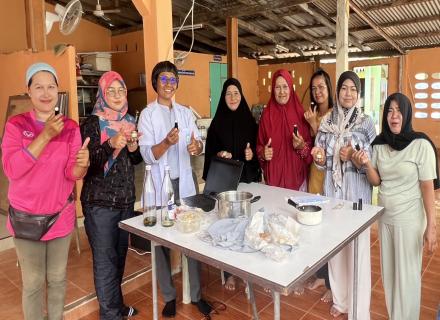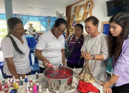 จัดโครงการพัฒนาทักษะอาชีพการสานกระเป๋าเส้นยางพารา