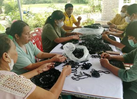 การจัดกิจกรรมการเรียนรู้เพื่อพัฒนาตนเอง โครงการศูนย์ฝึกอาชีพชุมชนหลักสูตรระยะสั้นไม่เกิน 30 ชั่วโมง หลักสูตรการทำพรมเช็ดเท้าจากเศษห่วงถุงเท้า