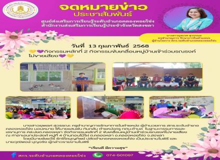 วันที่ 14 กุมภาพันธ์ 2568 นางสาวยุพเรศ สุวรรณะ ครู ชำนาญการ รักษาการในตำแหน่ง ผู้อำนวยการศูนย์ส่งเสริมการเรียนรู้ระดับอำเภอคลองหอยโข่ง มอบหมายให้นางสุภาภรณ์ จันวดี ครูอาสาสมัครฯ พร้อมด้วยคณะบุคลากร ร่วมสนับสนุนระดมทุนในการซ่อมแซมอาคารสำนักงาน ให |