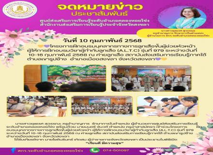 วันที่11 กุมภาพันธ์ 2568 🕕เวลา 18.00 น. นางสาวยุพเรศ สุวรรณะ ครูชำนาญการ รักษาการในตำแหน่งผู้อำนวยการ ศูนย์ส่งเสริมการเรียนรู้ระดับอำเภอคลองหอยโข่ง มอบหมายให้ นางสาวตากาญจน์ มีนุ่น ตำแหน่งบรรณารักษ์ เข้าร่วมกิจกรรมกับภาคีเครือข่ายแ |