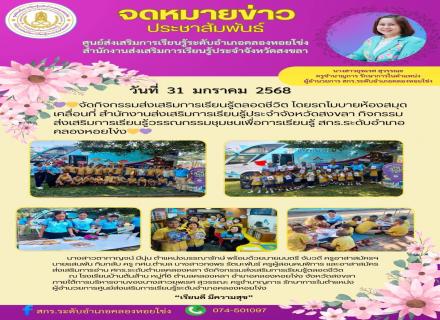 วันที่ 28 มกราคม 2567 ดร.ไพโรจน์ คเชนทองสุวรรณ์ ผู้อำนวยการ สกร.ระดับอำเภอหาดใหญ่ มอบหมายให้ นางสาวนภัทร วั่นเส้ง และ นางสาวญดา อินคโน ครู ศกร.ระดับตำบลฉลุง จัดกิจกรรมการเรียนรู้ตลอดชีวิตส่งเสริมการอ่านรถมินิโมบายเคลื่อนที่ โดยมี นายเอกพล เอียดคง ครู ศรช. |