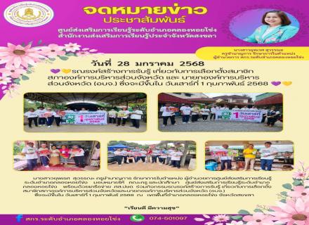 วันที่ 27 มกราคม 2568 นำโดย นางถนอมพร อารมณ์เย็น ตำแหน่ง ครูชำนาญการ รักษาการในตำแหน่ง ผู้อำนวยการศูนย์ส่งเสริมการเรียนรู้ระดับอำเภอรัตภูมิ พร้อมด้วยคณะครู ร่วมเดินทางไปส่งนางกัลยา ศิริรักษ์ ตำแหน่ง ครูอาสาฯ ได้ย้ายไปปฏิบัติหน้าที่ ณ ศูนย์ส่งเสริมการเรียน |