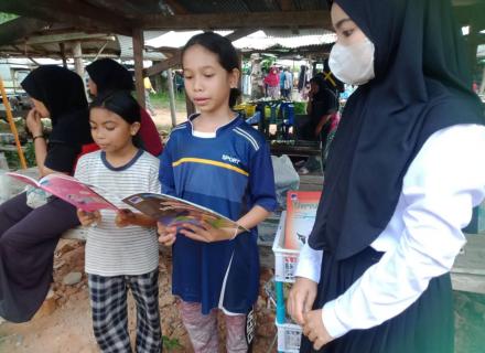 กิจกรรมส่งเสริมการอ่านห้องสมุดเคลื่อนที่สำหรับชาวตลาด