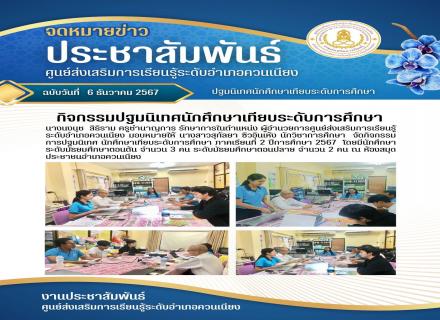 วันที่ 6 เดือนธันวาคม 2567 เวลา 09.00-15.00 น. นางนงนุช สิธิราม ครูชำนาญการ รักษาการในตำแหน่ง ผู้อำนวยการศูนย์ส่งเสริมการเรียนรู้ ระดับอำเภอควนเนียง มอบหมายให้ นางสาวขวัญฤดี แก้วบัวสังข์ ครูผู้สอนคนพิการ จัดกิจกรรมการเรียนการสอนประจำสัปดาห์ นักศึกษาระดับ