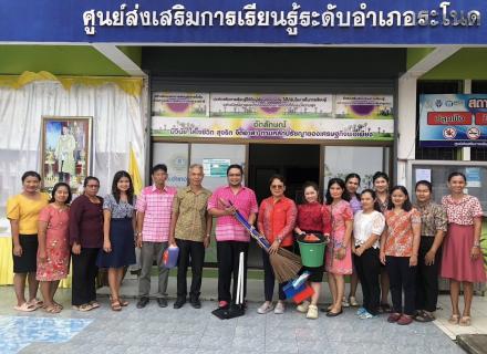 นางสาวศรัญญา จินตุลา ผู้อำนวยการศูนย์ส่งเสริมการเรียนรู้ระดับอำเภอเมืองสงขลา พร้อมด้วยคณะครูและบุคลากร ร่วมกันทำกิจกรรม 5 ส เพื่อพัฒนาสถานศึกษา จัดระเบียบพื้นที่ให้สามารถใช้งานได้อย่างมีประสิทธิภาพ เนื่องในโอกาสวันคล้ายวันพระบรมราชสมภพพระบาทสมเด็จพระบรมชน