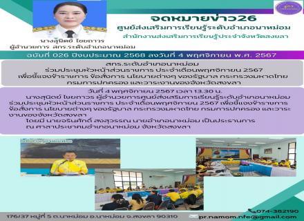 5 / พ.ย. / 2567 : ศูนย์ สกร.ระดับอำเภอจะนะ |