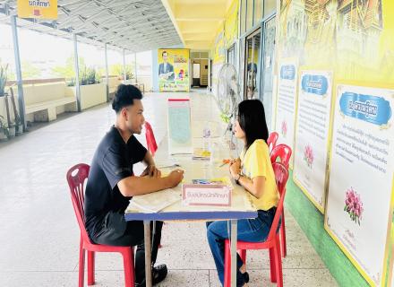 วันที่ 23 ตุลาคม 2567 ครู กศน.ตำบลทุ่งหวัง ลงพื้นที่รับสมัครเรียน ประจำภาคเรียนที่ 2 ปีการศึกษา 2567