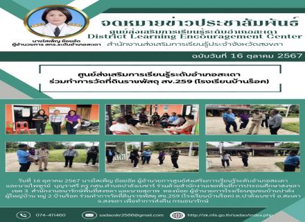 วันที่ 16 ตุลาคม 2567 นางโสเพ็ญ ย้อยอัด ผู้อำนวยการศูนย์ส่งเสริมการเรียนรู้ระดับอำเภอสะเดา และนายไพฑูรย์ บุญราศรี ครู กศน.ตำบลปาดังเบซาร์ ร่วมด้วยสำนักงานเขตพื้นที่การประถมศึกษาสงขลา เขต 3 สำนักงานธนารักษ์พื้นที่สงขลา และนายสุภาพ ทองน้อย ผู้อำนวยการโรง