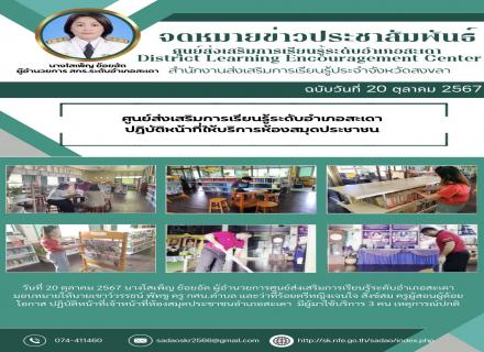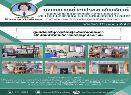 ศูนย์ส่งเสริมการเรียนรู้ระดับอำเภอสะเดา ปฏิบัติหน้าที่ให้บริการห้องสมุดประชาชน